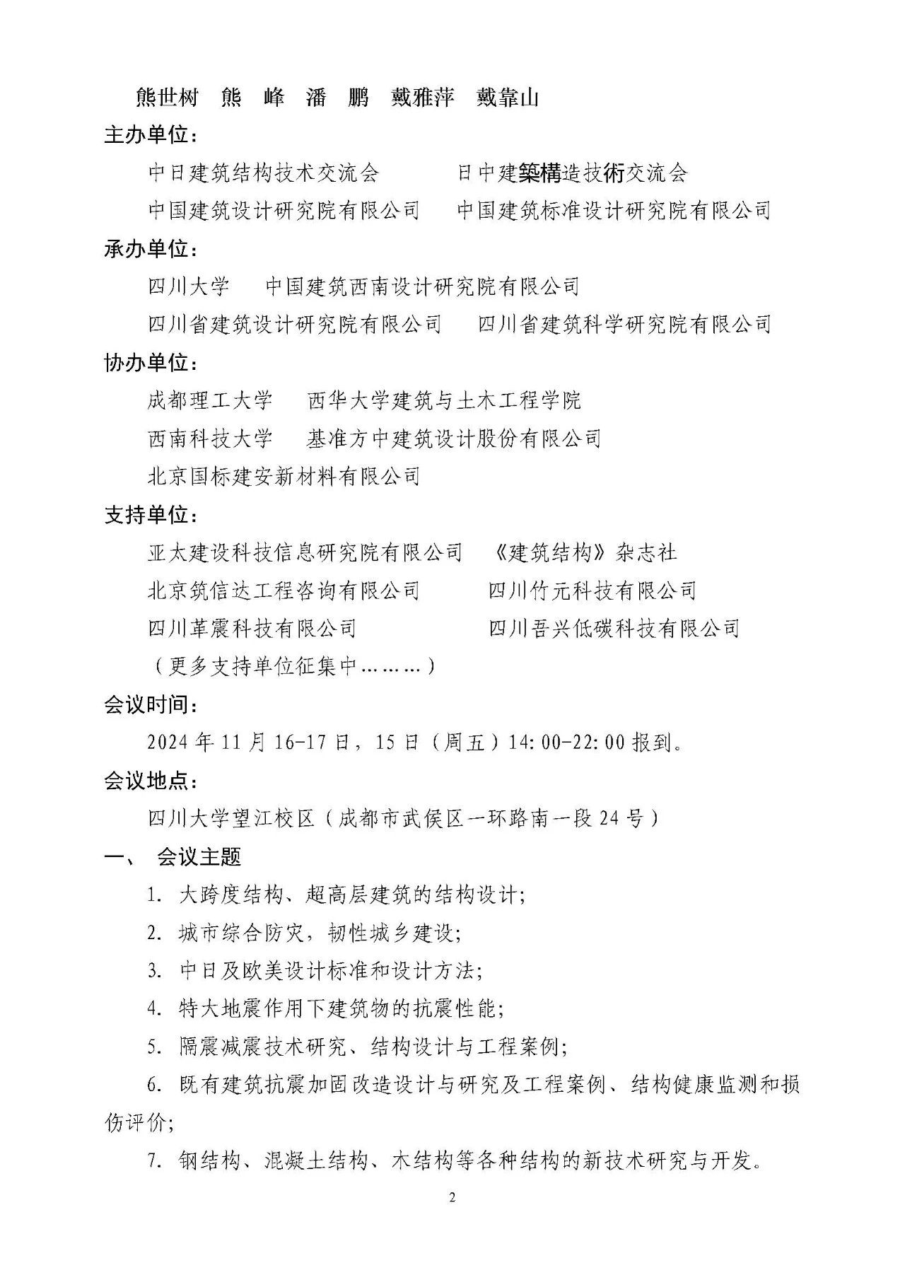 主辦單位:中日建筑結(jié)構(gòu)技術(shù)交流會、日中建築構(gòu)造技術(shù)交流會、中國建筑設(shè)計研究院有限公司、中國建筑標準設(shè)計研究院有限公司